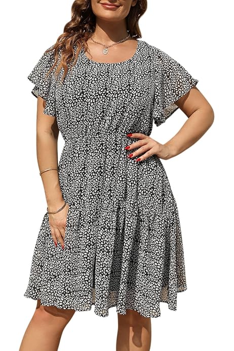 Amazon Com Gboomo Plus Size Dresses For Women Short Sleeve V Neck Floral A Line Dress Causal Flowy Midi Dresses 07 1x Clothing Shoes Jewelry